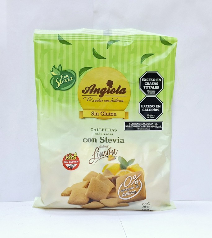 Ingredientes: Almidón de maíz, harina de arroz, agua, maltodextrina, fécula de mandioca, aceite de girasol, margarina, leche en polvo descremada, huevo en polvo, espesante (goma arábiga), polvo leudante (bicarbonato de sodio, bitartrato de potasio), antioxidante (vitamina C), saborizante (esencia de limón), conservante (propionato de calcio), edulcorantes no nutritivos (sucralosa (INS 955): 52mg / 100g, glicósidos de esteviol (INS 960a): 25mg / 100g). Contiene leche y huevo. Puede contener sulfitos y derivados de soja.