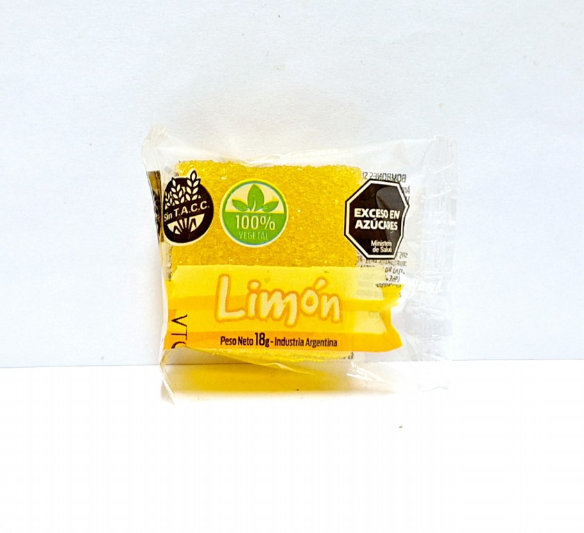 Ingredientes: Azúcar, glucosa, agua, estabilizante: pectina, acidulante: INS 330, regulador de acidez: INS 331ii, colorante: (INS 133, 124, tartrazina 102, 110), saborizante artificial a limón.
