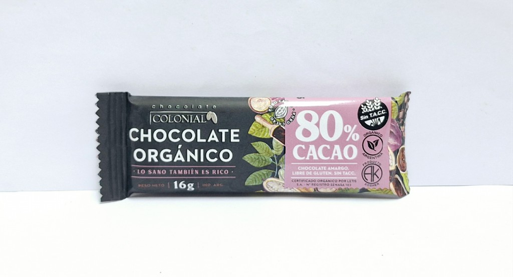 Ingredientes: Licor de cacao orgánico, azúcar orgánica, manteca de cacao orgánica. Puede contener leche y derivados de soja.