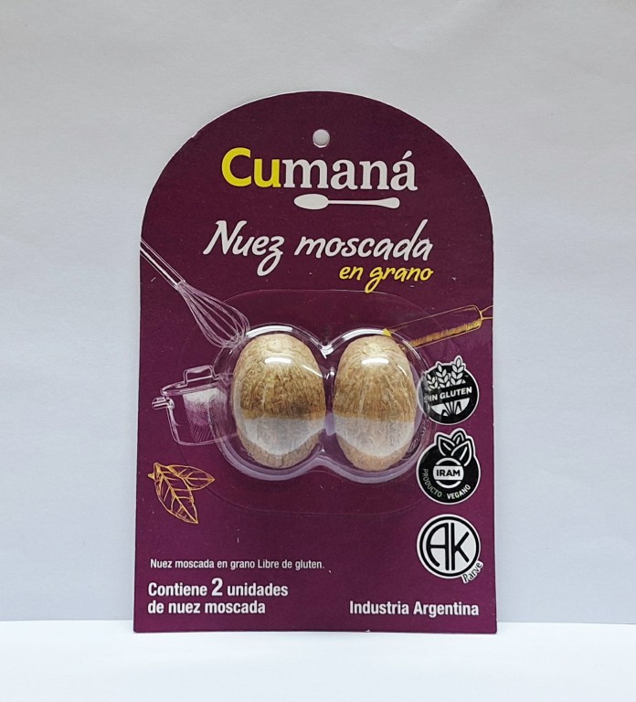 Ingredientes: Nuez moscada en grano libre de gluten. Contiene 2 unidades.