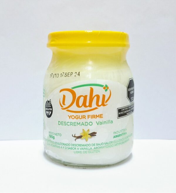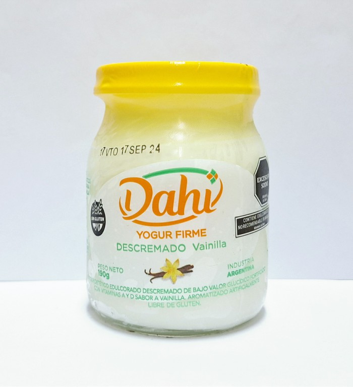 Ingredientes: Leche fluida descremada, leche en polvo descremada, almidón, cultivos lácticos específicos, vitaminas A y D, estabilizantes: gelatina y pectina, saborizante: esencia artificial de vainilla, edulcorante no nutritivos: Sucralosa.