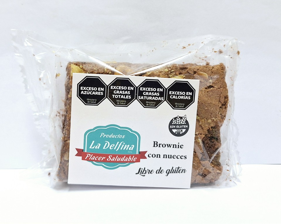 Ingredientes: Almidón de maíz, Baño de repostería semi amargo, huevos, azúcar, margarina, nueces, fécula de maíz, harina de arroz, fécula de mandioca, EMU (INS 471, INS 475, INS 491), CONS (INS 282, INS 202).