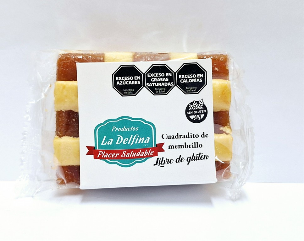 Ingredientes: Almidón de maíz, margarina, azúcar, harina de arroz, huevo en polvo, fécula de mandioca, polvo para hornear, agua, EMU (INS 471, INS 475, INS 491), esencia de vainilla, ESP (INS 412, INS 415) y CONS (INS 282). Dulce de membrillo (jarabe de glucosa, membrillo, azúcar, gelificante: INS 440, conservante: INS 211 (benzoato de sodio), acidulante: INS 330, colorante: INS 129).