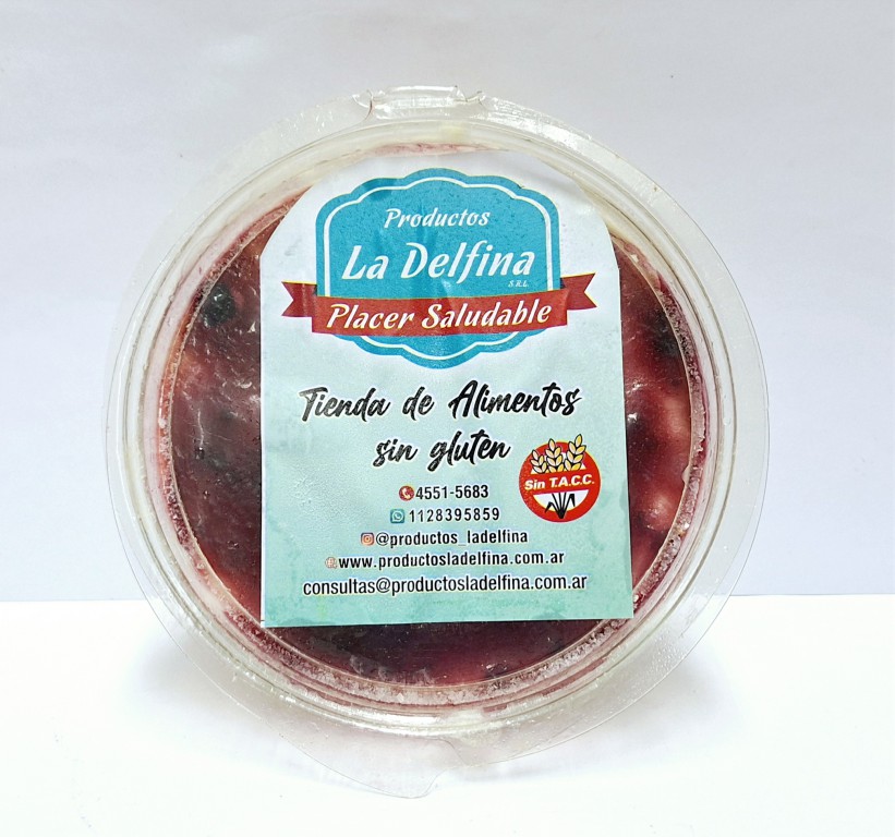 Ingredientes: Queso crema (Leche pasteurizada, crema, sólidos lácteos, EST (INS 415), ACI (INS 330), sal, COL (INS 171), CONS (INS 202), cuajo, fermentos lácteos), Crema de leche, Azúcar, Variegatto de frutos del bosque PEH (Azúcar, arándano, frutilla, agua, dextrosa, mora, frambuesa, jarabe mezcla de maíz, almidón, ACI: INS 330,