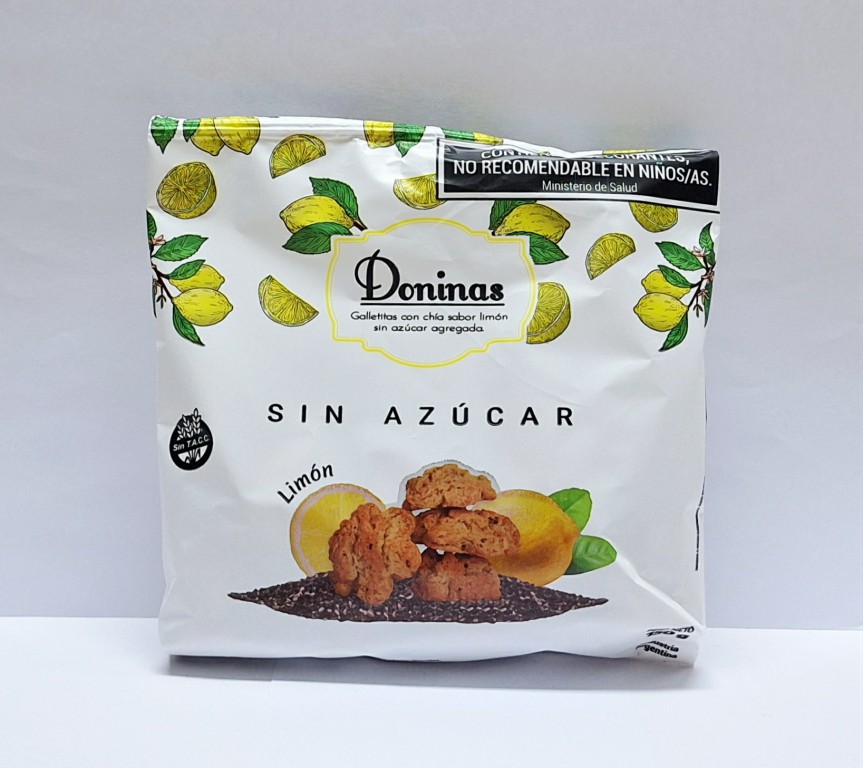 Ingredientes: Harina de arroz, almidón de maíz, edulcorante (stevia, maltodextrina y polidextrosa), margarina, aceite de girasol de alto oleico, huevo en polvo, semillas de chía, polvo para hornear, aceite esencial de limón, goma xántica, texturizante (goma arábiga, carboximetilcelulosa, alginato de sodio y pectina), bicarbonato de sodio y tocoferoles. Contiene huevo. Puede contener soja, nuez, maní y sulfitos.