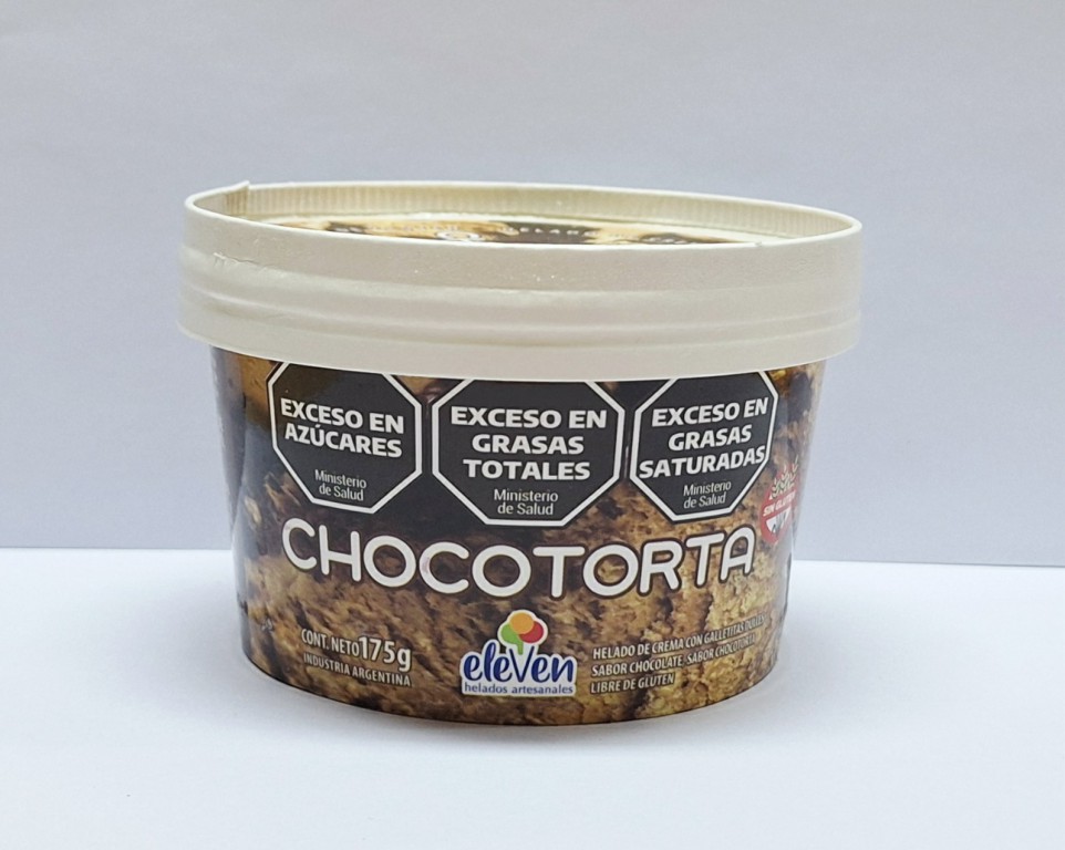 Ingredientes: Agua, dulce de leche, crema de leche, queso crema, azúcar, leche entera en polvo, galletitas dulces sabor chocolate, sabor chocotorta, jarabe de glucosa, EST: INS 401, INS 407, INS 410, INS 417, INS 466, EMU: INS 471, INS 472a, INS 472b. Contiene leche, sulfitos y derivados de soja. Puede contener huevo, pistacho, maní, avellanas, nueces y almendras.