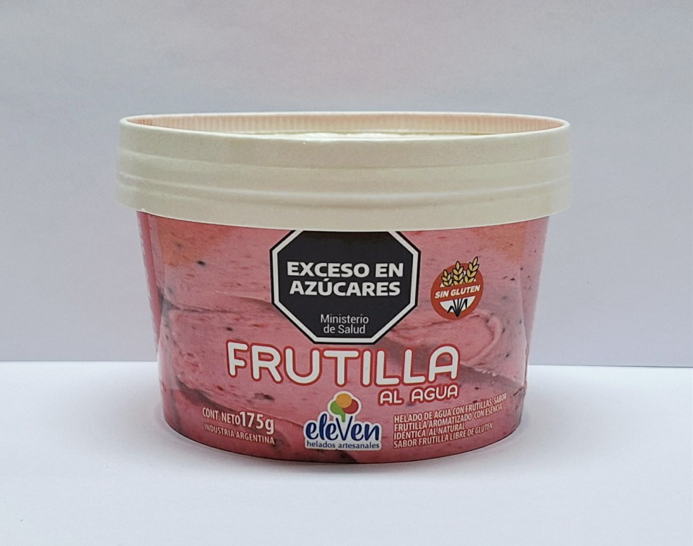 Ingredientes: Frutillas, agua, azúcar, jarabe de glucosa, leche entera en polvo, EST: INS 401, INS 407, INS 410, INS 417, INS 466, ARO: esencia idéntica al natural sabor frutilla, ACI: INS 330, INS 334, EMU: INS 471, INS 472a, INS 472b, ESP: INS 440, COL: INS 120. Contiene leche. Puede contener huevo, pistacho, maní, avellanas, nueces, almendras, sulfitos y derivados de soja.