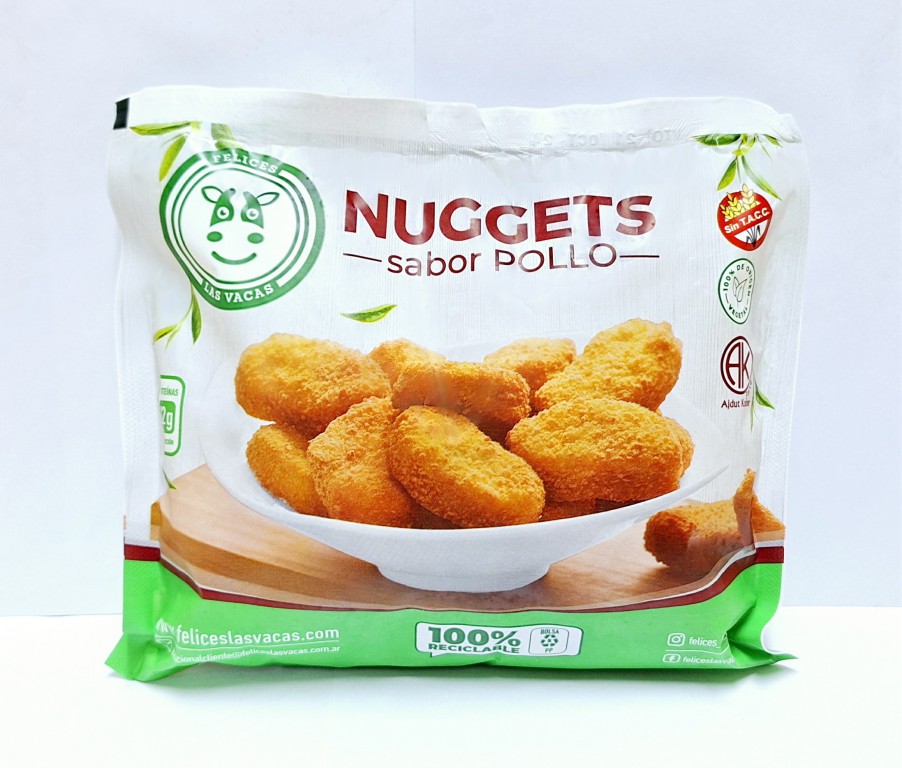 INGREDIENTES: Agua, harina de soja texturizada, arroz integral inflado, aceite de girasol alto oleico, metilcelulosa, jugo de limón, fibra de maíz, sal, ARO: idéntico al natural pollo.