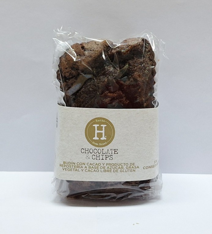 Ingredientes: Azúcar, premezcla para panificados (almidón de maíz, harina de arroz, fécula de mandioca, azúcar, proteína de suero lácteo, espesante: goma guar, sal), aceite de girasol alto oleico, huevo, agua, cacao amargo en polvo, mini gotas de chocolate amargo (azúcar, grasa vegetal, cacao en polvo, emulsionantes: lecitina y polirricinoleato de poligricerol, aromatizante: etilvainillina), polvo de hornear, leche en polvo. Contiene leche, huevo y derivados de leche. Puede contener maní, avellanas, nueces, almendras y sulfitos.