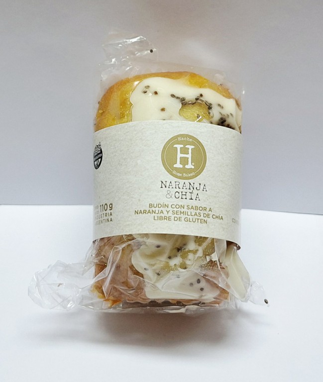 Ingredientes: Premezcla para panificados (almidón de maíz, harina de arroz, fécula de mandioca, azúcar, proteína de suero lácteo, espesante: goma guar, sal), azúcar, huevo, aceite de girasol alto oleico, agua, jugo de naranja, leche en polvo, ralladura de naranja, polvo de hornear, semillas de chía, sal, aromatizante: esencia natural de naranja, estabilizante: bicarbonato de sodio. Contiene leche, huevo y derivados de leche. Puede contener nueces y almendras.