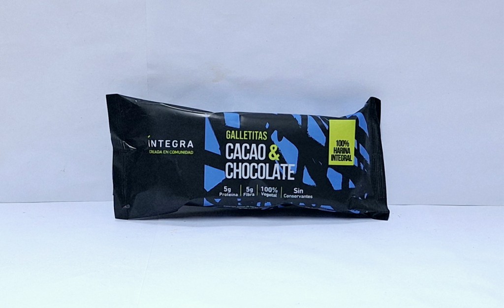 Ingredientes: Harina integral, pasta de maní, chocolate amargo, avena, azúcar mascabo, inulina (fibra de raíz de achicoria), almidón de maíz, cacao en polvo, polvo de hornear, sal marina, ARO: esencia de vainilla. Contiene maní, avena y derivados soja y trigo. Puede contener centeno, avellana, castañas de cajú, almendra, nuez, cebada y derivados de huevo y leche.