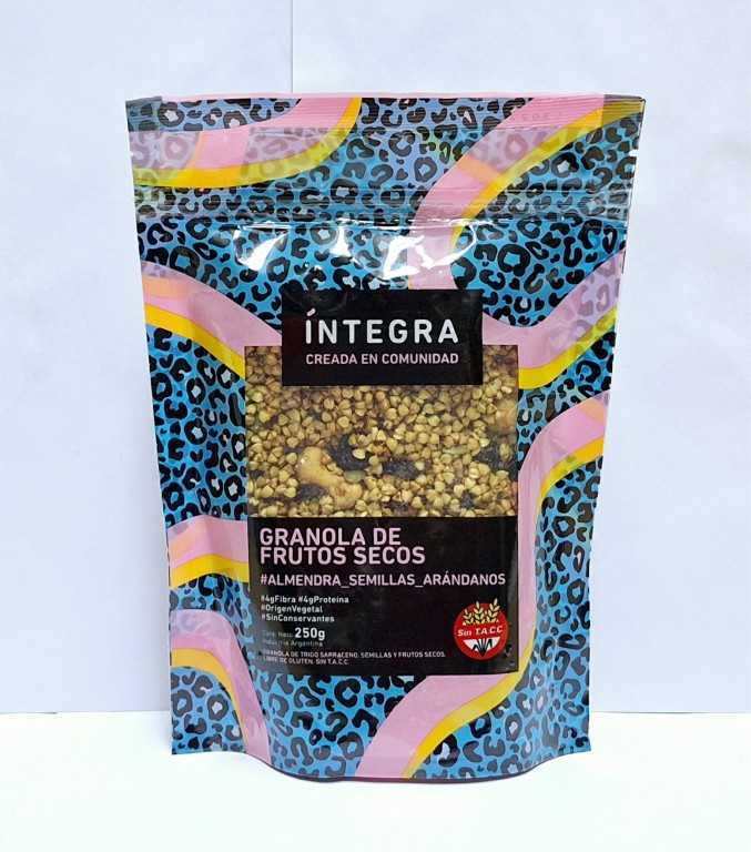 Ingredientes: Trigo sarraceno, fibra de la raíz de achicoria (inulina), almíbar de azúcar mascabo, almendras, arándanos, castañas de cajú, semillas de zapallo. Contiene almendras y castañas de cajú.