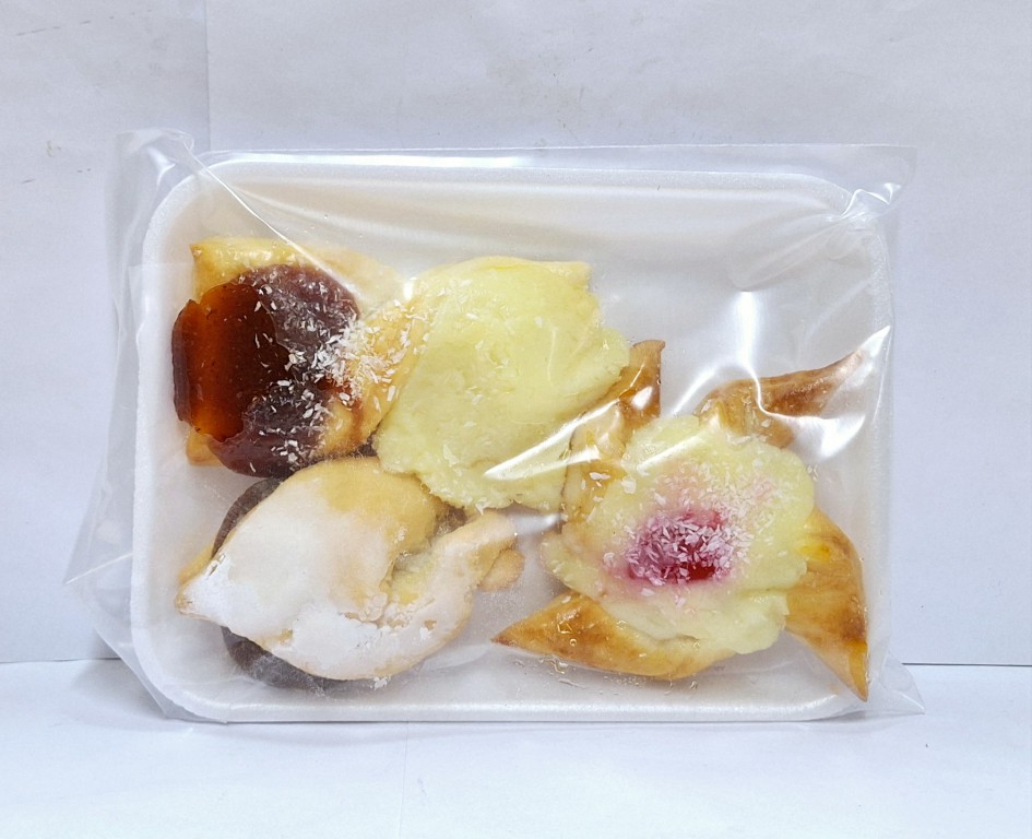 La bandeja contiene 1 factura con dulce de leche, 1 factura con crema pastelera y 1 factura con membrillo y pastelera.