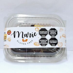Ingredientes: Harina de maíz, huevo, harina de mandioca, harina de arroz, manteca, azúcar, leche entera, levadura, sal, chocolate amargo (azúcar, aceite vegetal hidrogenado, cacao en polvo, emulsionante INS 322, aromatizante vainilla). Contiene leche, huevo y derivados de soja. Puede contener maní, almendras y avellanas.