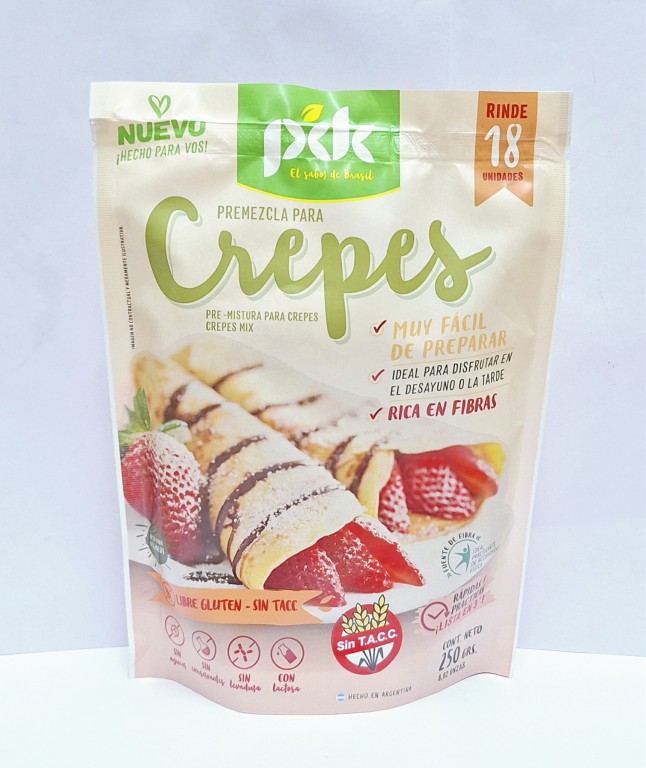 Preparación: Mezclar el contenido del paquete con 500 ml de agua natural y 2 huevos. Agregar sal o endulzante a gusto. Se bate en licuadora o minipimer durante 3 minutos. En una sartén antiadherente a temperatura media, verter la cantidad necesaria hasta cubrir la superficie con una capa muy fina. Cuando comienza a despegarse, voltear. Se puede combinar para preparaciones dulces y saladas.