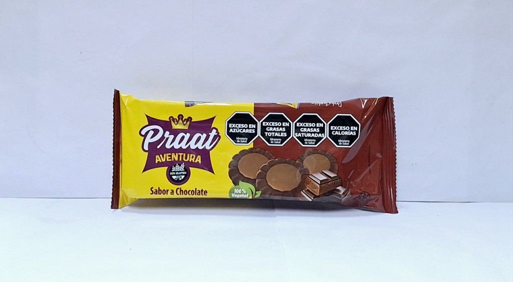 Ingredientes: Masa: Almidón de maíz, azúcar, harina de arroz, cacao, fécula de mandioca, aceite de girasol alto oleico, aceite vegetal interesterificado, azúcar invertido, ARO: (artificial a vainilla y artificial a chocolate), EMU: INS 322, ESP: INS 414. Relleno: Baño de repostería semiamargo (azúcar, aceite vegetal, cacao en polvo, licor de cacao, EMU: (INS 322, INS 476), aceite vegetal interesterificado, ARO: artificial a vainilla. Contiene sulfitos y derivados de soja. Puede contener leche, huevo, almendras, nueces, castañas de cajú y maní.