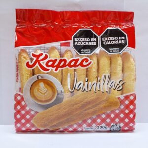 INGREDIENTES: Huevo, azúcar, harina de arroz, almidon de maiz, fecula de mandioca, emulsionante (lecitina de soja), agentes leudantes (bicarbonato de sodio, bicarbonato de sodio, fosfato monocálcico), estabilizantes (goma xantica – goma guar), saborizantes (esencia de vainilla – esencia de chocolate – esencia de limon), colorante amarillo (tartrazina), conservante ( propionato de calcio), contiene: huevo, soja.