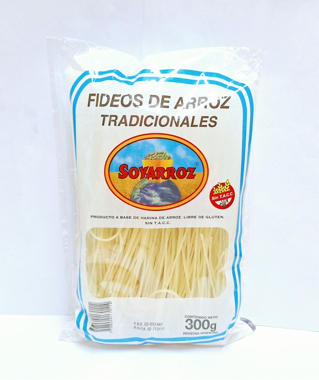 Ingredientes: Harina de arroz. fécula de maíz, agua, ESP: carboximetilcelulosa sódica (INS 466), goma xántica (INS 415), CONS: sorbato de potasio (INS 202). Puede contener soja.